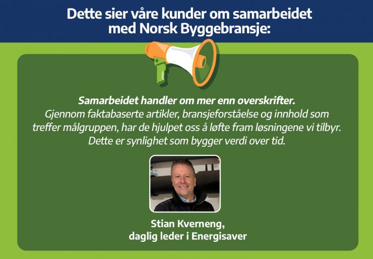 - Vi opplever at Norsk Byggebransje ser mer enn bare overskriftene. De forstår markedet, faget og hvordan man må jobbe for å skape varig oppmerksomhet rundt Energisaver, sier Kverneng.