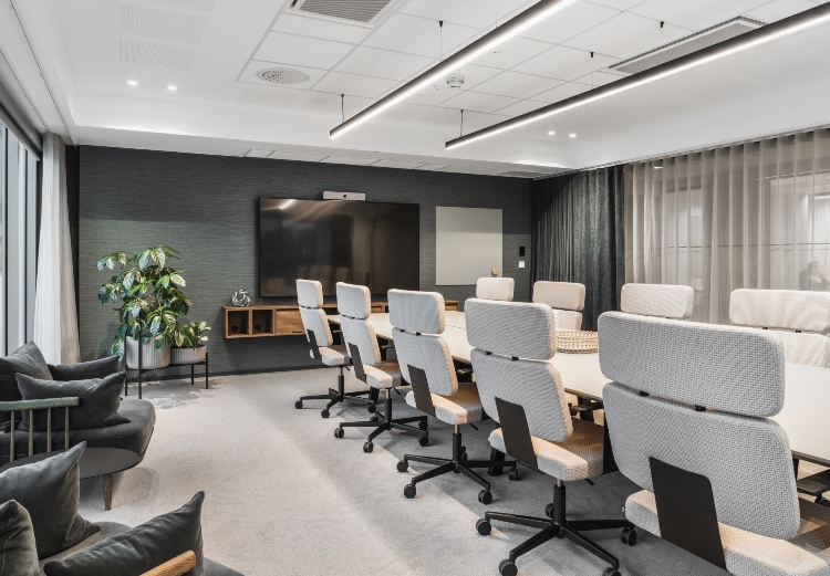 - Vi var også ansvarlige for design av øvrige kontorarealer og har definert alt fra glassfronter, overflater, materialer og farger, samt skiltprogram.