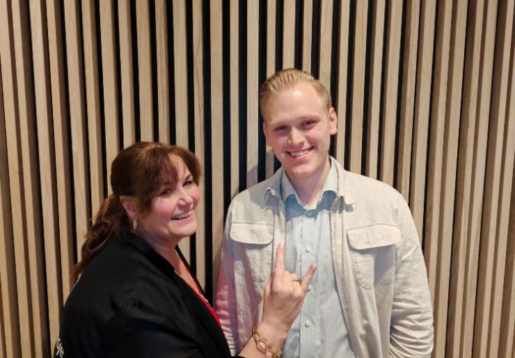 Ellen Øiesvold Palsén, Ansvarlig utgiver Norsk Byggebransje og Marcus Bunæs fra Lysglimt Elektro. Foto: Norsk Byggebransje