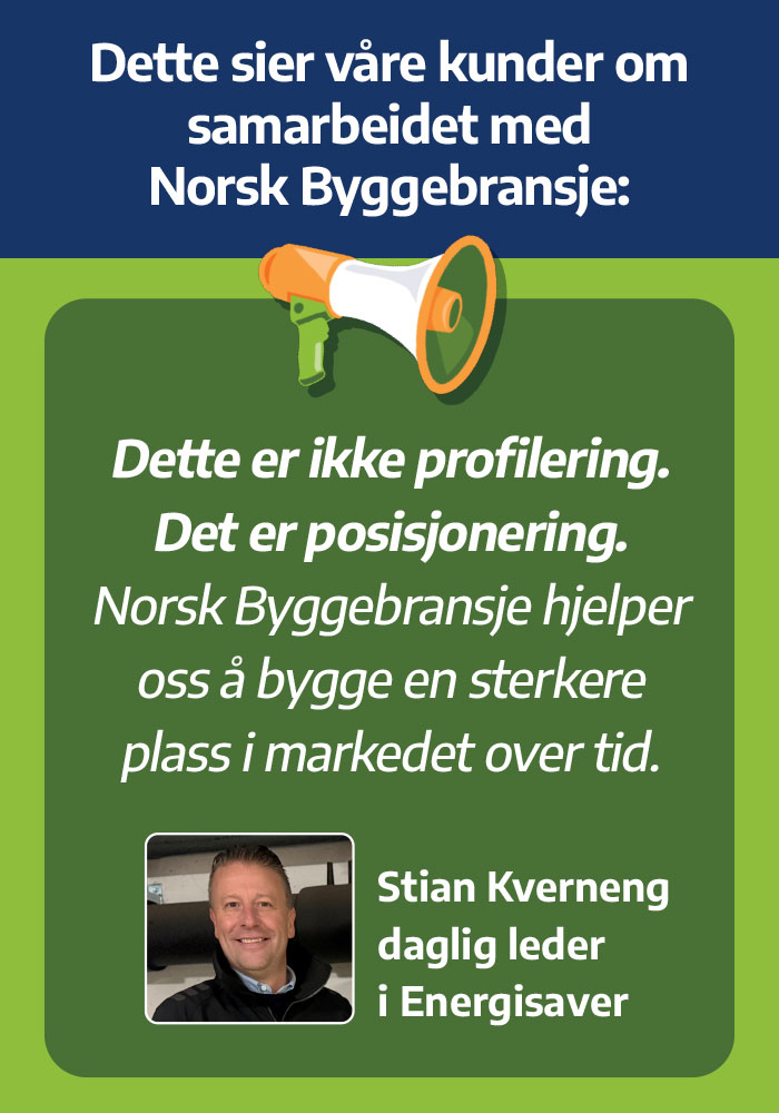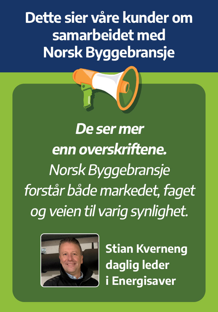 - Vi opplever at Norsk Byggebransje ser mer enn bare overskriftene. De forstår markedet, faget og hvordan man må jobbe for å skape varig oppmerksomhet rundt Energisaver, sier Kverneng.