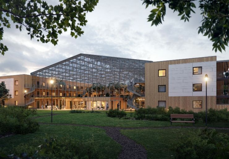 Veidekke skal bygge 51 leiligheter med parkeringskjeller og en stor felles temperert vinterhage på Falkum i Skien for Bovieran AS og medeieren Skien Boligbyggelag.