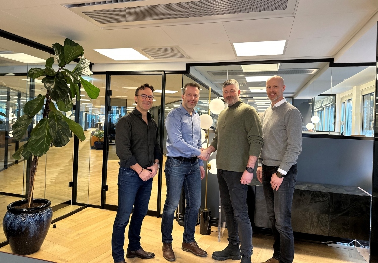 På bildet fra venstre: Lars Kristiansen, daglig leder i Lerka Eiendom, Tom Egil Roll-Olsen, daglig leder i Lerka utvikling, Morten Støtterud, prosjektsjef i STØ og Trond Berget-Ausland, daglig leder i STØ. 3D/ill: Arcasa Arkitekter AS
