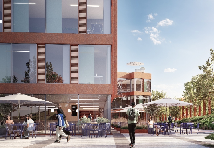 Fra Rødtvet T-banestasjon ankommer de ansatte og besøkende et åpent og innbydende torg på Kakkelovnskroken 3 med blant annet kafé og bakeriutsalg.