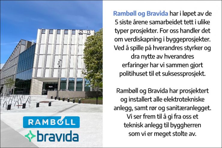 - Prosjektet er en samspillsmodell hvor politiet er hovedleietaker. Gjennom sin brukergruppe har politiet vært involvert siden starten av prosjektet, og det har vært en tett og god prosess mellom BH, bruker og entreprenør gjennom prosjektet.